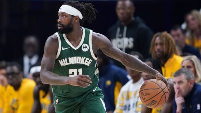 INDIANAPOLIS, INDIANA – MAY 02: Patrick Beverley #21 of the Milwaukee Bucks dribbles the ball in the first quarter against the Indiana Pacers during game six of the Eastern Conference First Round Playoffs at Gainbridge Fieldhouse on May 02, 2024 in Indianapolis, Indiana. NOTE TO USER: User expressly acknowledges and agrees that, by downloading and or using this photograph, User is consenting to the terms and conditions of the Getty Images License Agreement. (Photo by Dylan Buell/Getty Images)