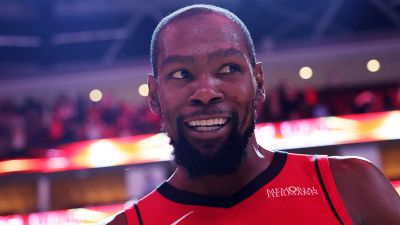 HOUSTON, TEXAS – NOVEMBER 16: Kevin Durant #7 of the Houston Rockets reacts after an overtime win against the Orlando Magic at Toyota Center on November 16, 2025 in Houston, Texas. NOTE TO USER: User expressly acknowledges and agrees that, by downloading and or using this photograph, User is consenting to the terms and conditions of the Getty Images License Agreement. (Photo by Alex Slitz/Getty Images)