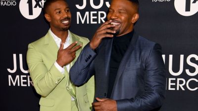 LONDON, ENGLAND – JANUARY 15: Michael B. Jordan and Jamie Foxx attend the “Just Mercy” UK Special Screening at Vue Leicester Square on January 15, 2020 in London, England. (Photo by Dave J Hogan/Getty Images)
