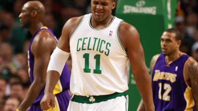 (013110 Boston, MA) Boston Celtics forward Glen Davis cried like a Big Baby after making a bad pass in the 4th quarter of the Celtics 90-89 loss to the Los Angeles Lakers at TD Garden on Sunday, January 31, 2010. Staff Photo by Matthew West. (Photo by Matthew West/MediaNews Group/Boston Herald via Getty Images) Photo by Matthew West/MediaNews Group/Boston Herald via Getty Images)