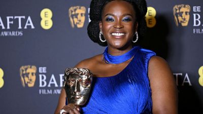 Nigerian-British actress Wunmi Mosaku poses with the award for Best supporting actress in the film “Sinners” during the BAFTA British Academy Film Awards ceremony at the Royal Festival Hall, Southbank Centre, in London, on February 22, 2026. (Photo by JUSTIN TALLIS / AFP via Getty Images)