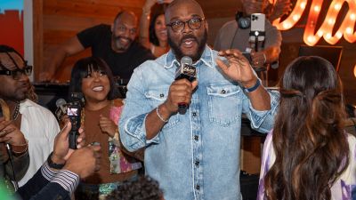 ATLANTA, GEORGIA – MARCH 15: Tyler Perry and Catherine Brewton attend Sea Salt SoulFull Sunday Gospel Brunch at Sea Salt Seafood Howell Mill on March 15, 2026 in Atlanta, Georgia. (Photo by Prince Williams/WireImage)