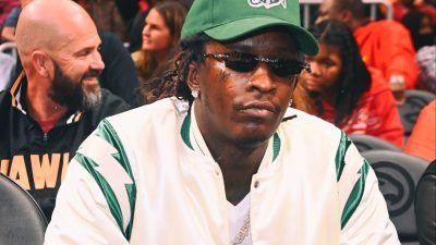 ATLANTA, GEORGIA – MARCH 25: Rapper Young Thug attends the game between Golden State Warriors and the Atlanta Hawks at State Farm Arena on March 25, 2022 in Atlanta, Georgia. (Photo by Paras Griffin/Getty Images)