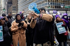 LOS ANGELES, CA – APRIL 12, 2025 – – U.S. Rep. Alexandria Ocasio-Cortez addresses a crowd of 36,000 people at the Fighting Oligarchy rally at Gloria Molina Grand Park in downtown Los Angeles on April 12, 2025. (Genaro Molina/Los Angeles Times via Getty Images)