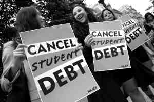WASHINGTON, DC – MAY 12: (EDITOR’S NOTE: Image has been converted to black and white) Student loan borrowers gather near The White House to tell President Biden to cancel student debt on May 12, 2020 in Washington, DC. (Photo by Paul Morigi/Getty Images for We, The 45 Million)