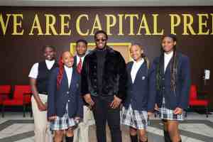 NEW YORK, NEW YORK – OCTOBER 18: Sean “Diddy” Combs poses for a photo with students during a surprise visit at his Capital Preparatory School in the Bronx on October 18, 2022 in New York City. (Photo by Mike Coppola/Getty Images for Sean “Diddy” Combs)
