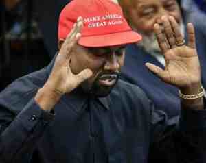 WASHINGTON, DC – OCTOBER 11: (AFP OUT) Rapper Kanye West speaks during a meeting with U.S. President Donald Trump in the Oval office of the White House on October 11, 2018 in Washington, DC. (Photo by Oliver Contreras – Pool/Getty Images)