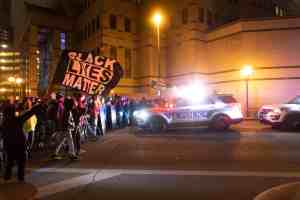 COLUMBUS, OH – APRIL 20: Black Lives Matter activists confront Columbus Police outside of Columbus Police headquarters during a protest in reaction to the shooting of Makiyah Bryant on April 20, 2021 in Columbus, Ohio. Columbus Police Shot and killed Makiyah Bryant, 16 years old, on April 20, 2021 sparking outrage from the community. (Photo by Stephen Zenner/Getty Images)
