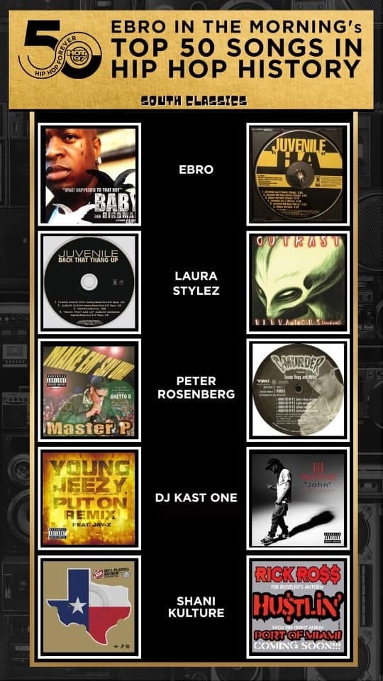 To celebrate 50 years of Hip Hop; Ebro, Laura Stylez, Rosenberg, Shani Kulture & DJ Kast One will be nominating two songs each that day.