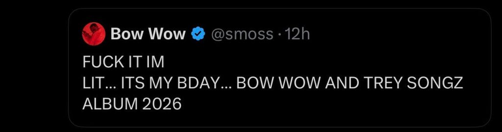 “Fuck it, I’m lit,” Bow tweets on his birthday. “It’s my BDay… Bow Wow and Trey Songz Album 2026.”