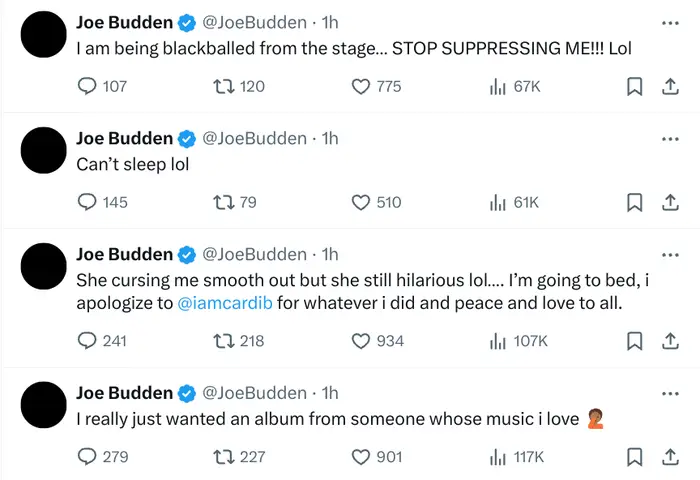 Cardi B hits back at Joe Budden, accusing him of fixating on her career and personal life after he criticized her upcoming album rollout. She also alleged that Budden received a lap dance from her and engaged in cocaine use, among other claims.