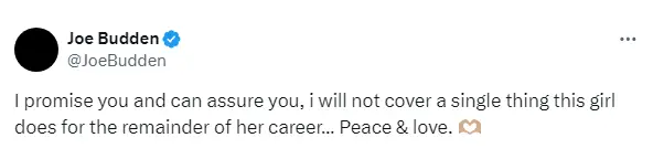 Budden, who later denied all claims of receiving a lap dance from Cardi or using cocaine, vowed to “not cover a single thing” she does for the rest of her career.