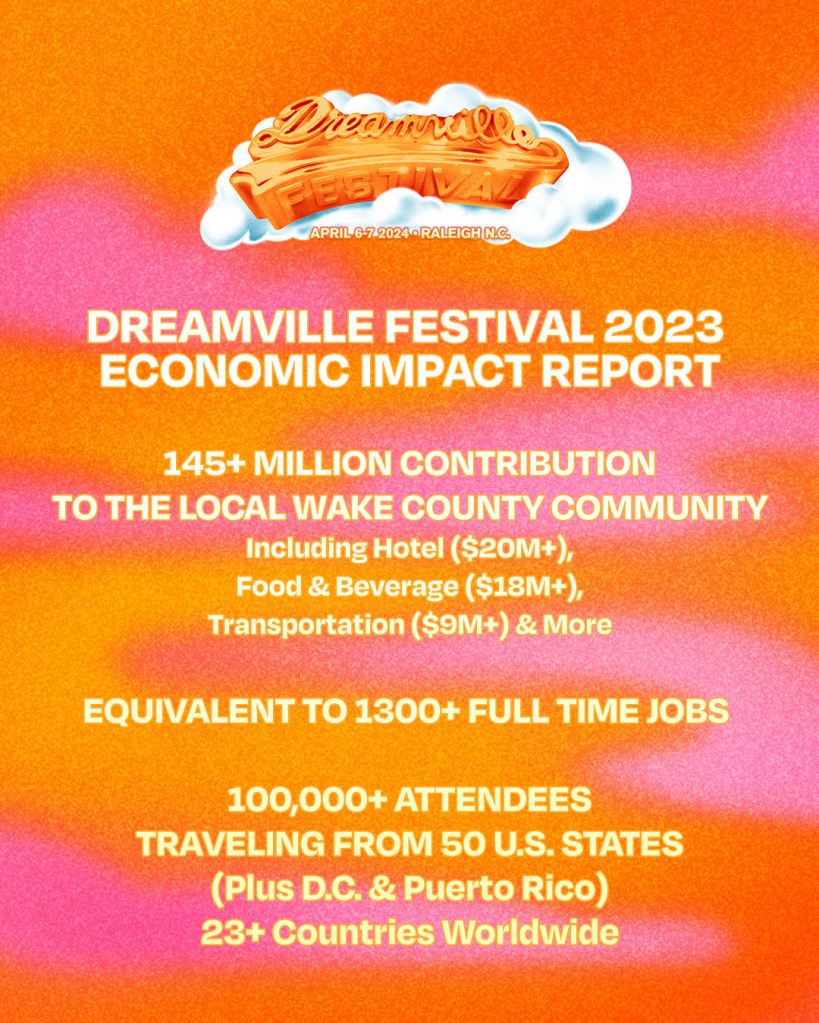 “Dreamville continues to be a major driver of visitor direct economic impact to our hotels, restaurants, and retailers throughout Wake County,” said Loren Gold, Executive Vice President of Visit Raleigh. “There are high expectations that 2024 will continue to see 80% or more of the tickets held for the two-day festival to be from visitors from all (50) US States and (20+) international countries. A truly global event for Raleigh!”