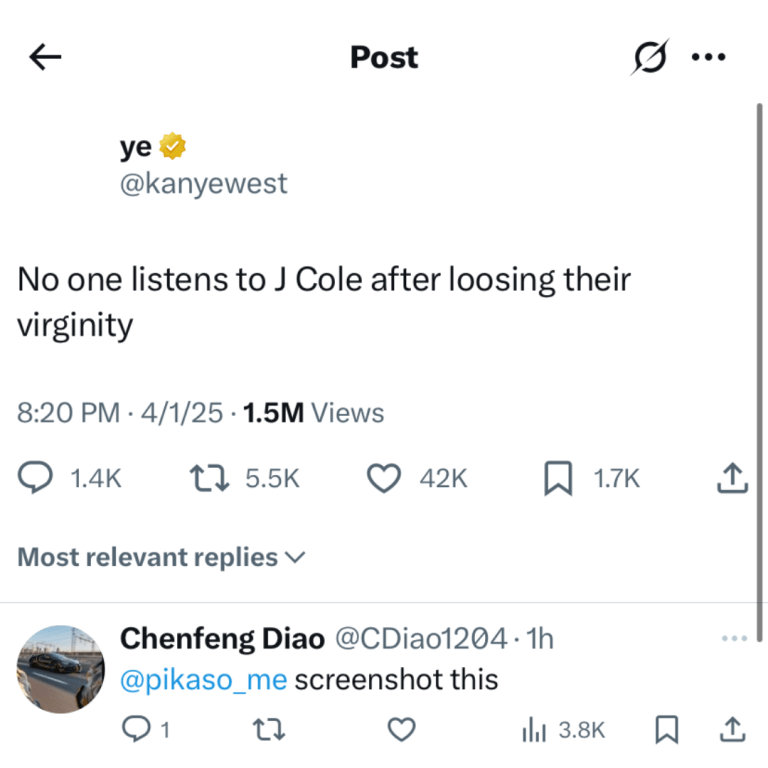 In a recent rant on X (formerly Twitter), the polarizing artist took aim at J. Cole, a rapper he has collaborated with in the past. West’s incendiary remark—that “no one listens to J. Cole after losing their virginity”—has sparked backlash across the hip-hop community, drawing criticism from fans and artists alike.