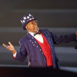 Standing on top of a vintage Black Grand National before launching into “squabble up” with incredible choreography as dancers took the shape of an American flag.