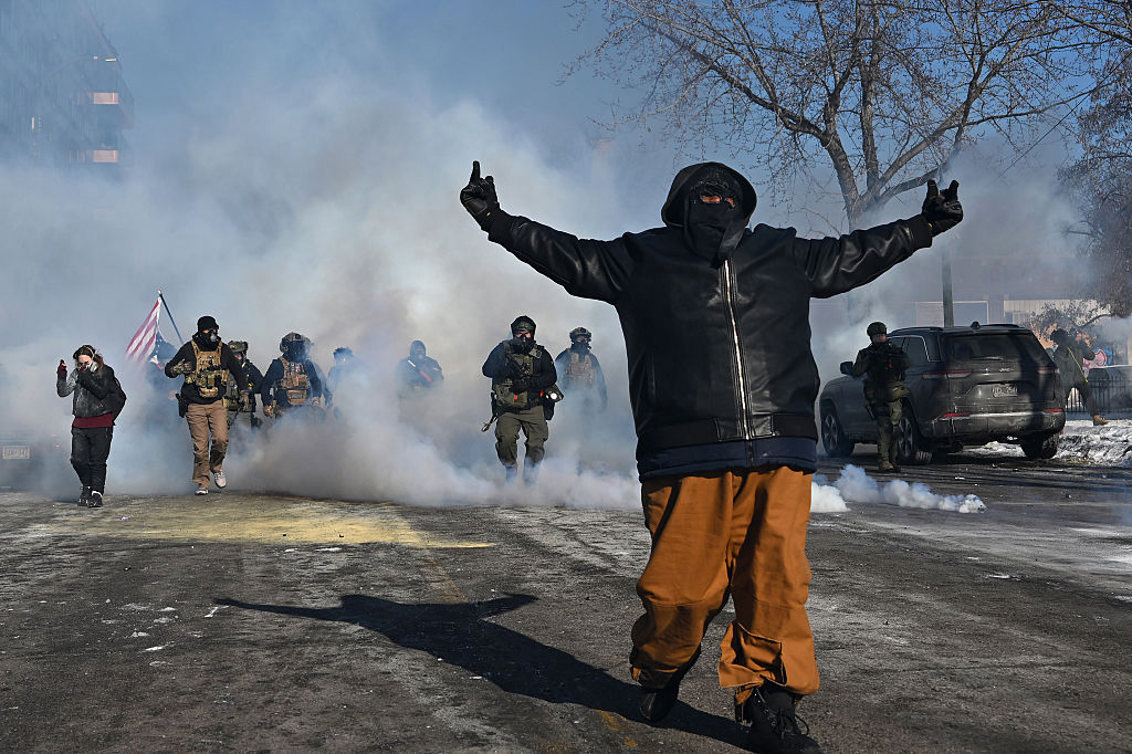 MINNEAPOLIS, MINNESOTA – JANUARY 24: A person is chased by federal agents amid protests following a shooting on January 24, 2026 in Minneapolis, Minnesota. Federal agents allegedly shot and killed a protestor amid a scuffle to arrest him. The Trump administration has sent a reported 3,000 federal agents into the area, with more on the way, as they make a push to arrest undocumented immigrants in the region. (Photo by Brandon Bell/Getty Images)