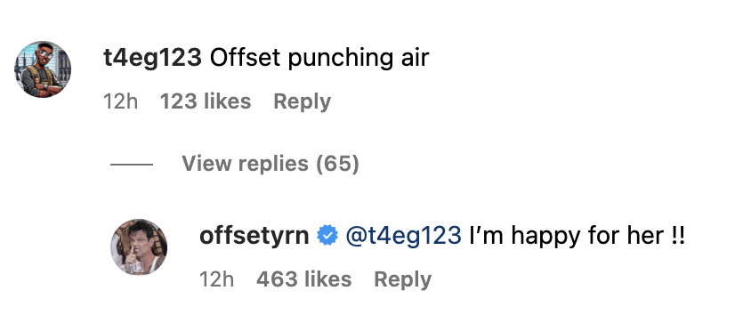 Offset has responded to viral photos showing Cardi B giving NFL star Stefon Diggs a lapdance at a New York City nightclub. Despite their recent and contentious divorce, Offset expressed his approval of Cardi’s apparent move on, commenting, “I’m happy for her !!” on Instagram.