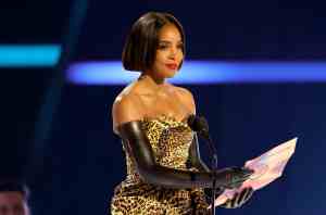 LAS VEGAS, NEVADA – MAY 26: (EDITORIAL USE ONLY) (L-R) Alix Earle presents the Favorite Female R&B Artist award to SZA onstage during the 2025 American Music Awards at BleauLive Theater at Fontainebleau Las Vegas on May 26, 2025 in Las Vegas, Nevada. (Photo by Ethan Miller/Getty Images)