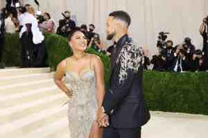Professional basketball player Stephen Curry and his wife US-Canadian actress Ayesha Curry attend the World Premiere Of Universal Pictures “Nope” at the Chinese theatre in Hollywood, California, July 18, 2022. (Photo by VALERIE MACON / AFP) (Photo by VALERIE MACON/AFP via Getty Images)