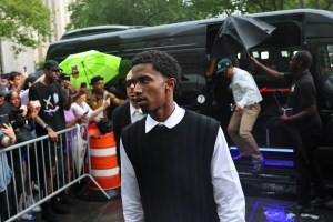 NEW YORK, NEW YORK – JULY 01: King Combs, son of Sean “Diddy” Combs, arrives at Manhattan Federal Court during Combs’ sex trafficking and racketeering trial on July 01, 2025 in New York City. The jury will continue deliberating in Combs’ trial after reaching a verdict on the two counts each of sex trafficking and transportation to engage in prostitution, but were deadlocked on a decision on racketeering conspiracy. Combs faces a sentence that could extend to life in prison if convicted and has pleaded not guilty. (Photo by Michael M. Santiago/Getty Images)