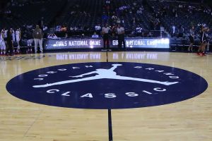 BROOKLYN, NY – APRIL 08: Jordan Brand Classic Logo on the court prior to the Jordan Brand Classic National Girls Game on April 8, 2018, at the Barclays Center in Brooklyn,NY. (Photo by Rich Graessle/Icon Sportswire via Getty Images)