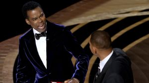 HOLLYWOOD, CALIFORNIA – MARCH 27: Will Smith appears to slap Chris Rock onstage during the 94th Annual Academy Awards at Dolby Theatre on March 27, 2022 in Hollywood, California. (Photo by Neilson Barnard/Getty Images)